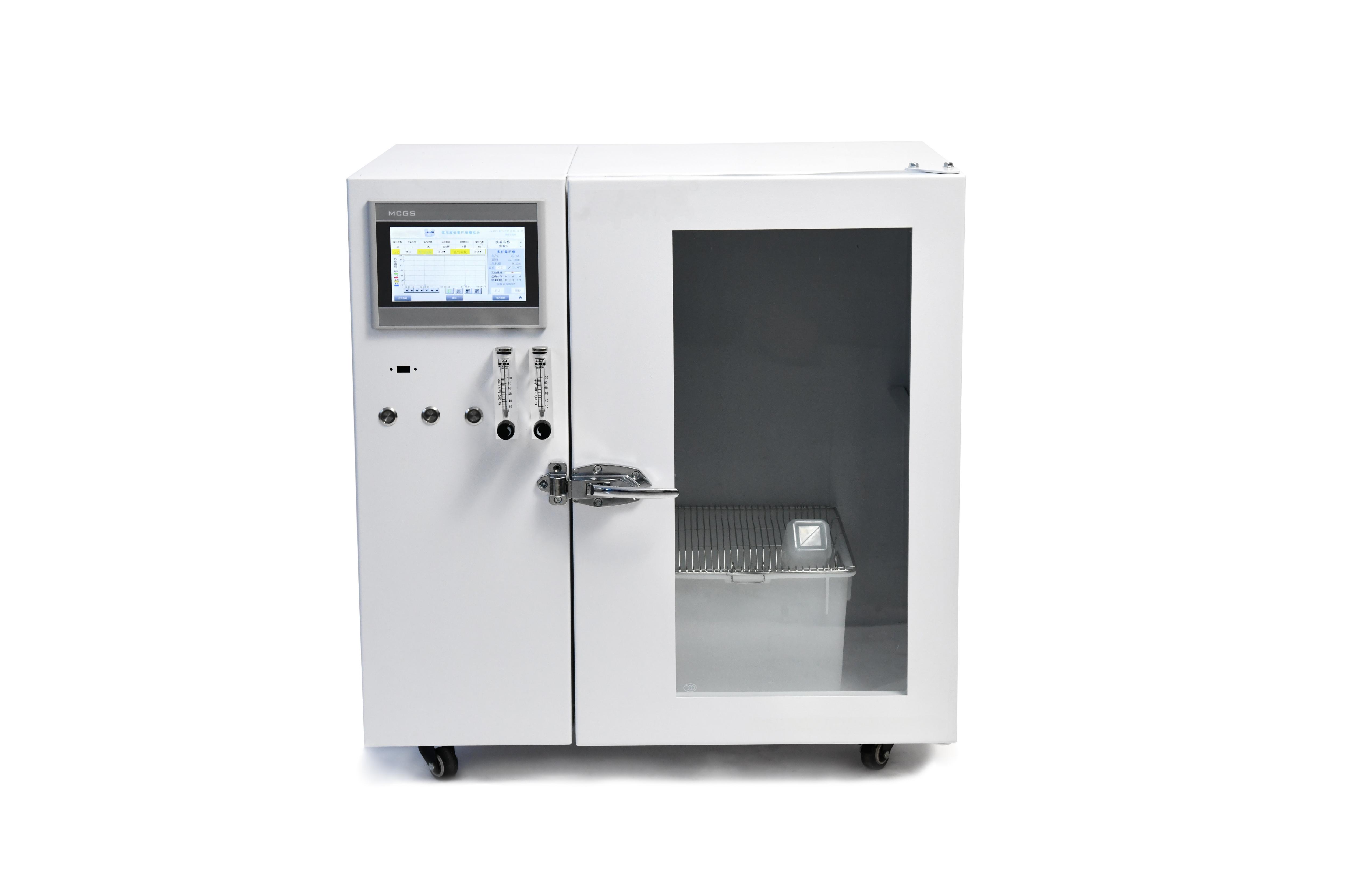 动物智能环境模拟氧仓系统主要由气体控制器和动物实验舱两部分组成。提供不同气体浓度、温湿度实验环境,满足间歇高氧/低氧实验(CIH)、急性缺氧实验、慢性缺氧实验、高氧/低氧交替实验、安乐死实验需求
