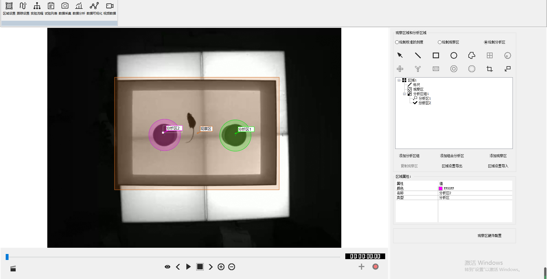 labmaze中心定点绘制法方便绘制实验所需的迷宫区域。实验结束后发现某个区域没有绘制,可以临时添加此区域,无需重新分析视频,软件可以直接得到此区域的指标。