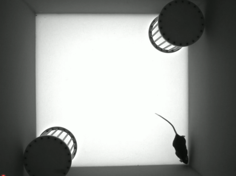 在新物体认知实验中,利用动物运动轨迹跟踪系统详细地跟踪鼠类动物的鼻尖来实现新物体识别试验。