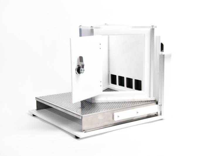 1. 配置两通道观测笼,可拆卸结构,底部带有活动底板,可清洗;规格:W30*L25*H35cm。带观察窗和活动门,可方便抓取动物。